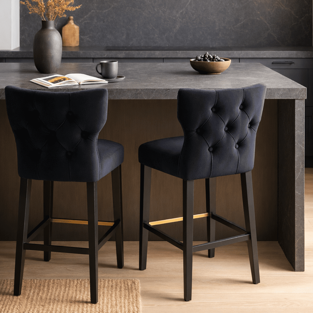 The Amani Bar Stool combines modern comfort with refined design. Upholstered in black fabric, it brings a sense of sophistication to any kitchen island, breakfast bar, or high dining area. The soft, padded seat offers lasting comfort, making it perfect for both everyday use and entertaining guests.
