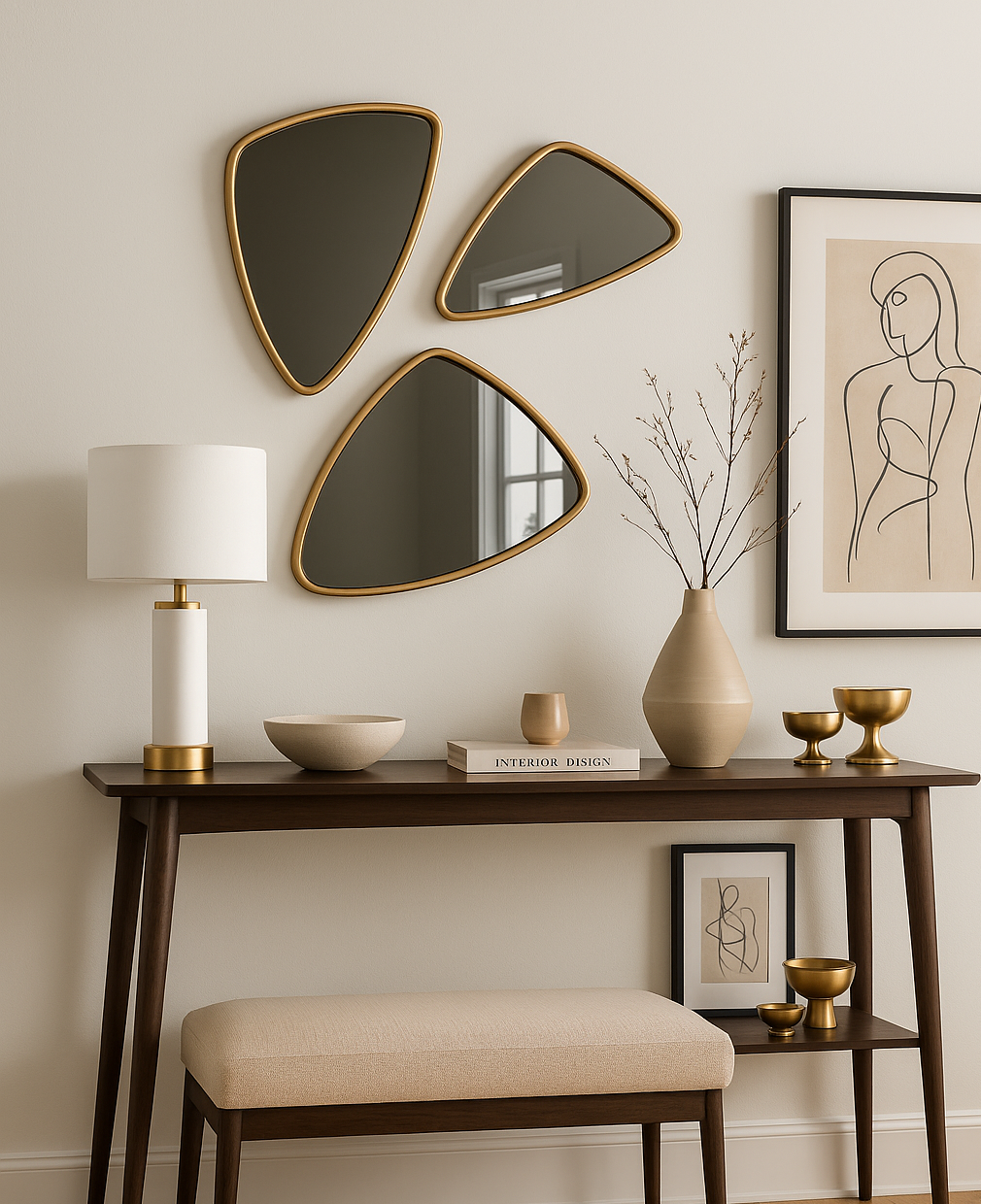Every piece is crafted with precision, ensuring durability and style that lasts. Whether you’re brightening a hallway or decorating a feature wall, the Auro Triangular Wall Mirror brings elegance, functionality, and modern artistry to your home.