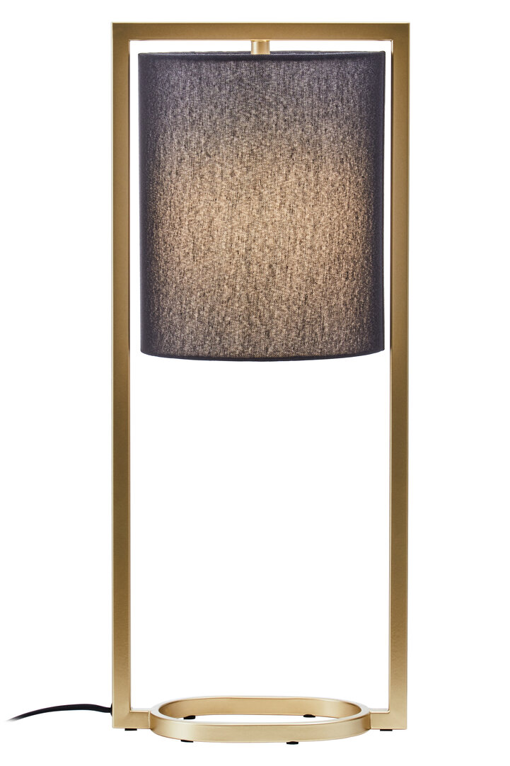 Sleek matte gold frame with black linen shade creates contemporary ambient lighting. Azala Table Lamp is perfect for living rooms, bedrooms, and modern interiors