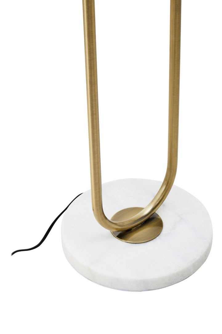 For stability and contrast, the lamp rests on a solid white marble base. The natural veining of the marble introduces subtle texture, while its weight ensures a sturdy foundation. Together, the gold metal and marble base form a luxurious combination that enhances any décor style.
