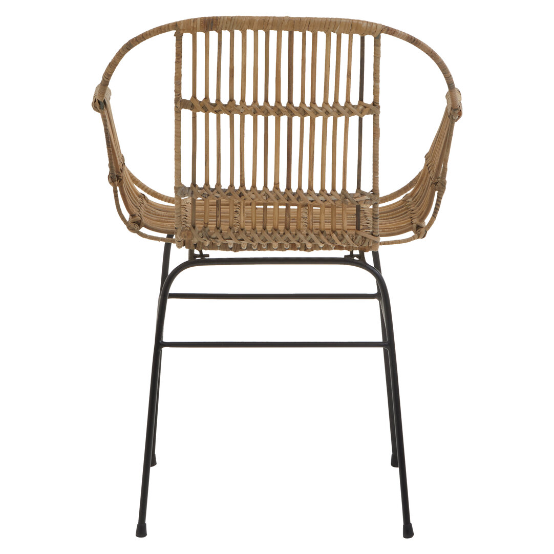 Crafted from high-quality natural rattan, each chair carries subtle variations in tone and pattern, making every piece unique. The powder-coated black iron legs ensure stability and longevity, while the open weave allows light to flow through, enhancing the sense of space in a room.
