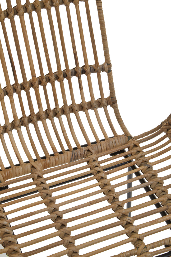 Supported by sturdy black iron legs, the chair offers both durability and balance. The contrast between the warm rattan and sleek metal gives it a modern edge while keeping a rustic charm. Together, these materials create a harmonious blend of natural and industrial elements, perfect for contemporary, bohemian, or coastal-inspired spaces.
