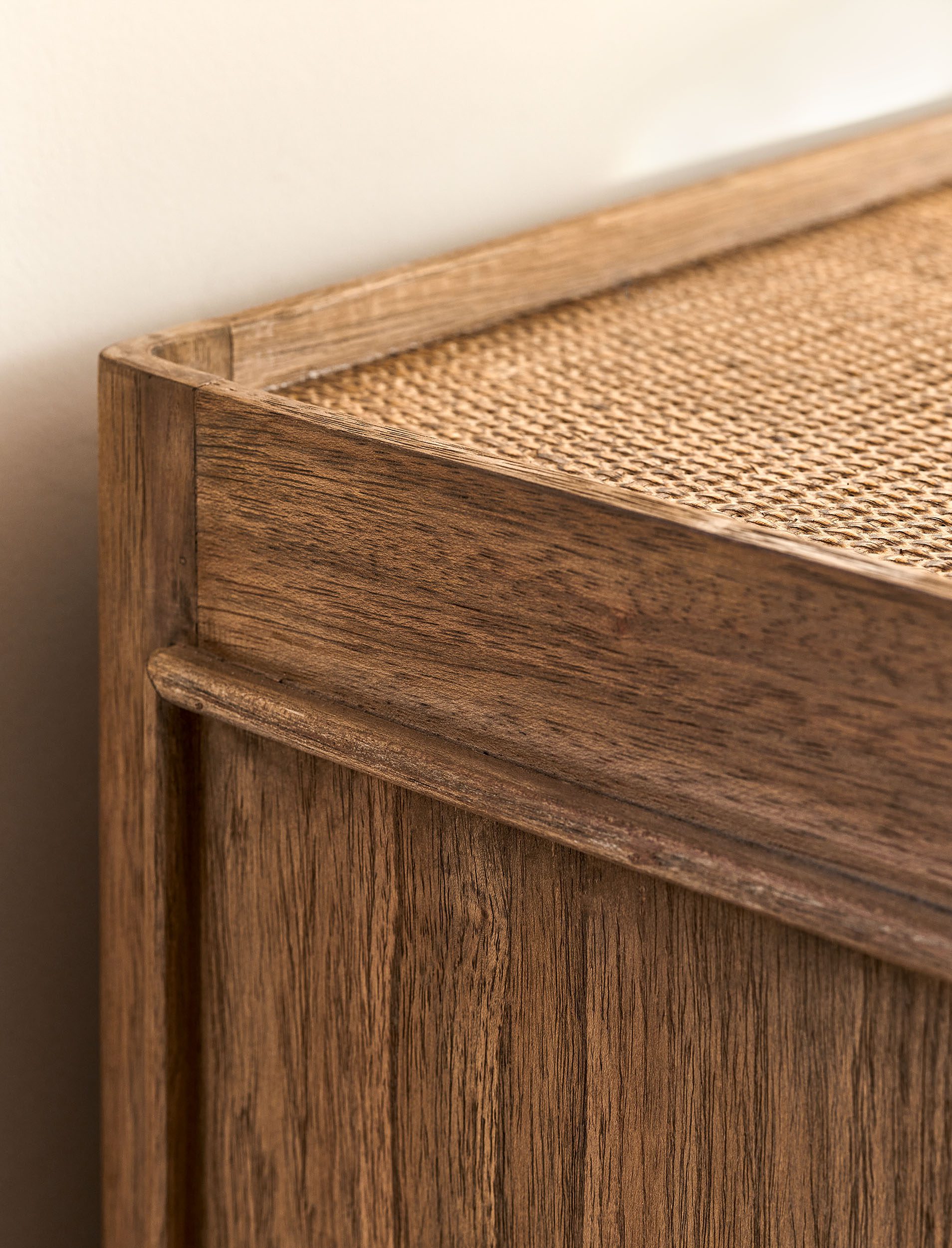 Add natural texture to your space with the Chesterton Chest of Drawers, crafted from Bayur wood with rattan detailing, brass handles & smooth wooden runners