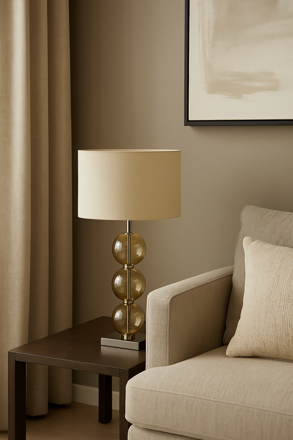 With its chrome base, stacked glass orbs, and refined symmetry, the Alora Table Lamp transforms everyday lighting into an elegant visual statement.