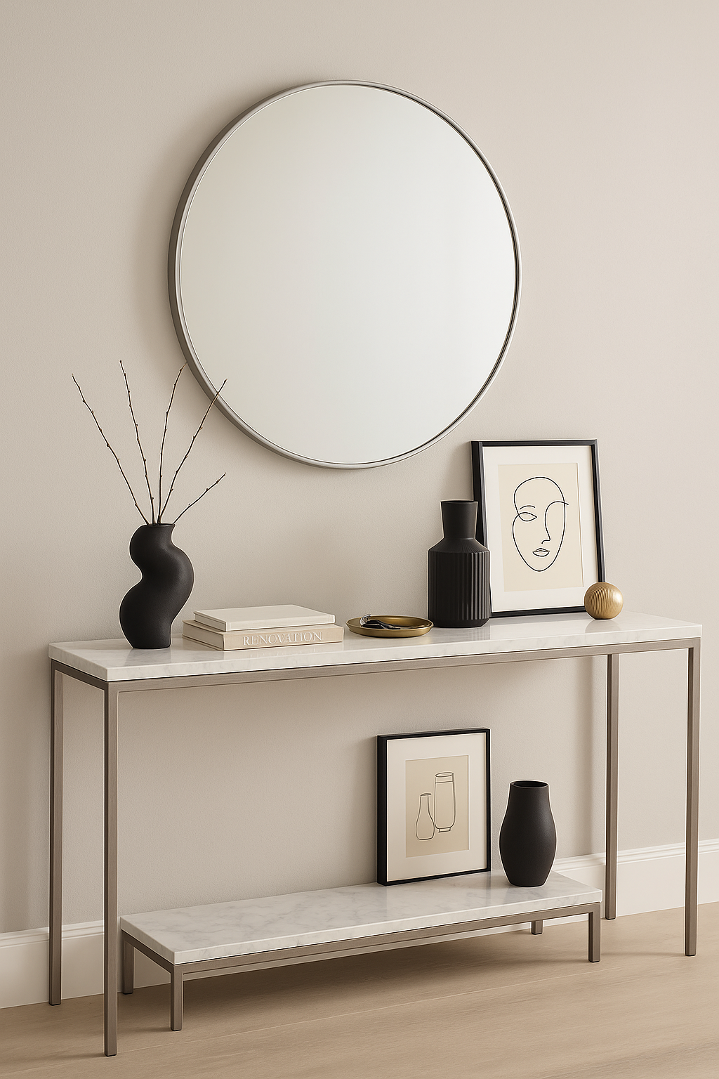 The round shape softens the look of angular furniture and adds harmony to your décor. Whether you hang it above a console, a sofa, or in an entryway, it instantly becomes a refined focal point. The silver tone works beautifully with both light and dark walls, offering contrast and elegance in equal measure.