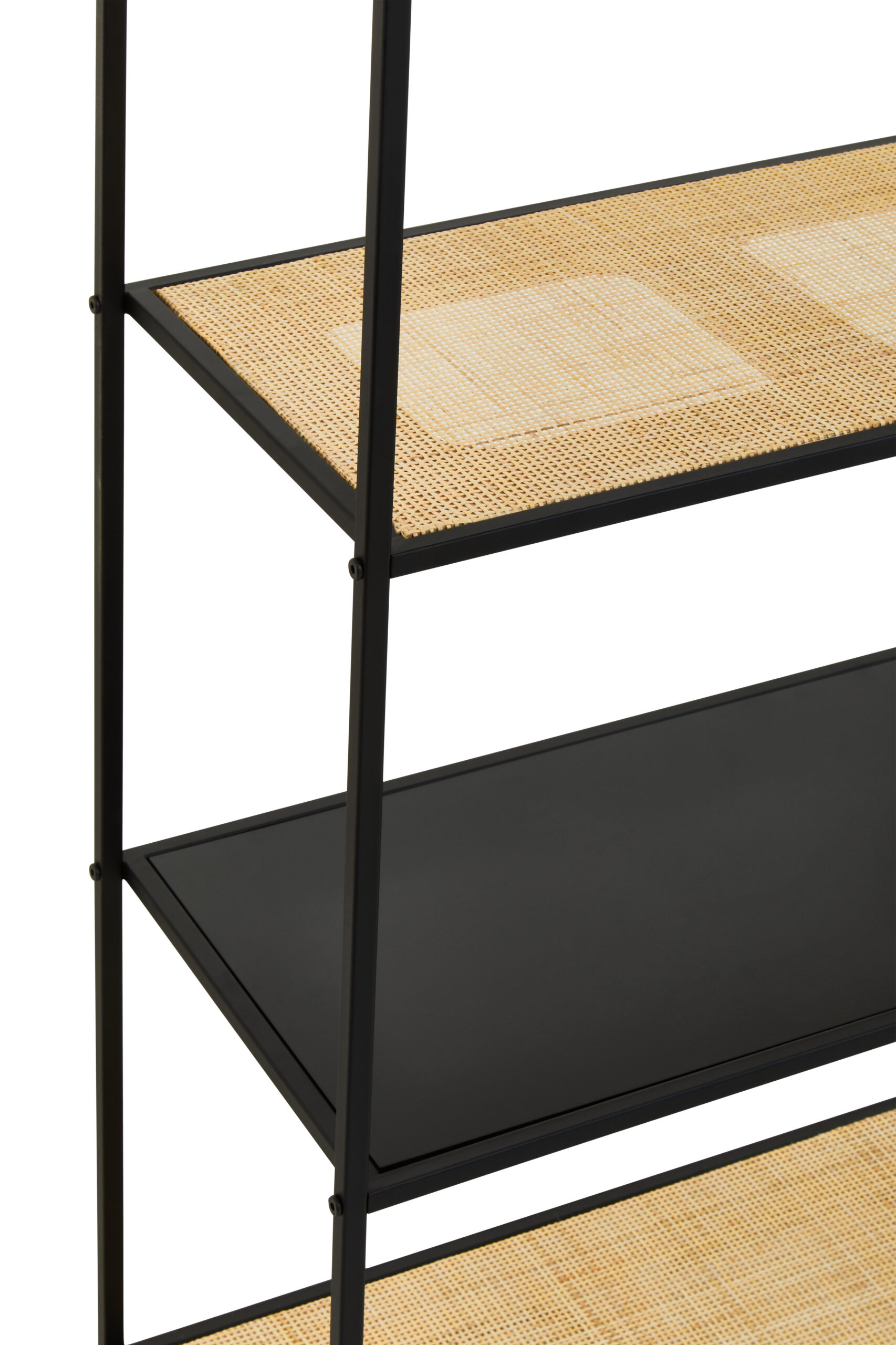 Its open design makes items easy to access and keeps your space airy. The mix of black metal and natural rattan creates a stylish contrast. This adds warmth and texture to your room. The five tiers provide plenty of room for organisation. Whether in your living room, office, or bedroom, the Dakota shelf fits perfectly.