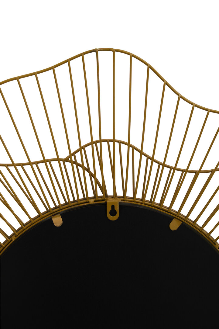 Crafted with delicate metal petals, the mirror features an intricate blossoming frame that surrounds a perfectly circular reflective surface. Each petal is gently curved and layered, creating a sense of movement and depth. The gold finish enhances the sculptural design, casting a warm and radiant glow wherever it hangs.