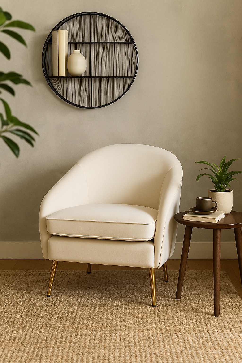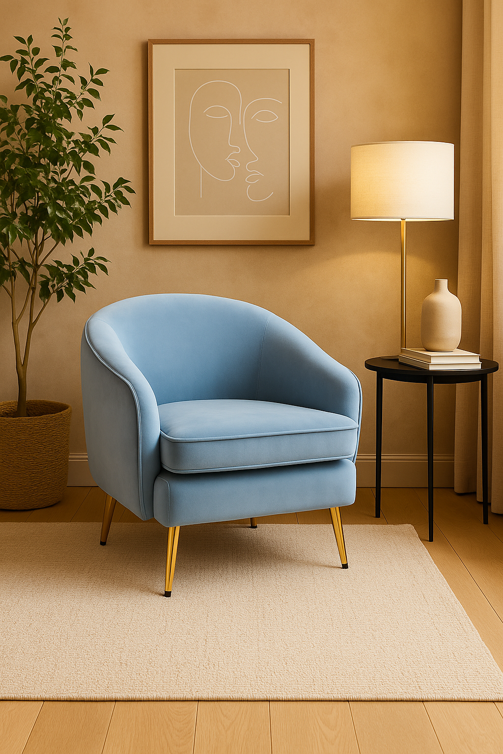 Designed with mid-century modern aesthetics in mind, the Esme Round Velvet Armchair fits perfectly into contemporary, classic, and eclectic interiors. Its compact size makes it ideal for living rooms, bedrooms, or even stylish office corners. Moreover, the carefully chosen colours Cream, Mink, and Light Blue allow you to personalise your space with elegance.