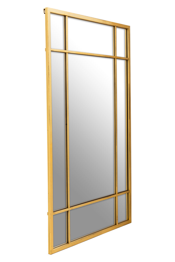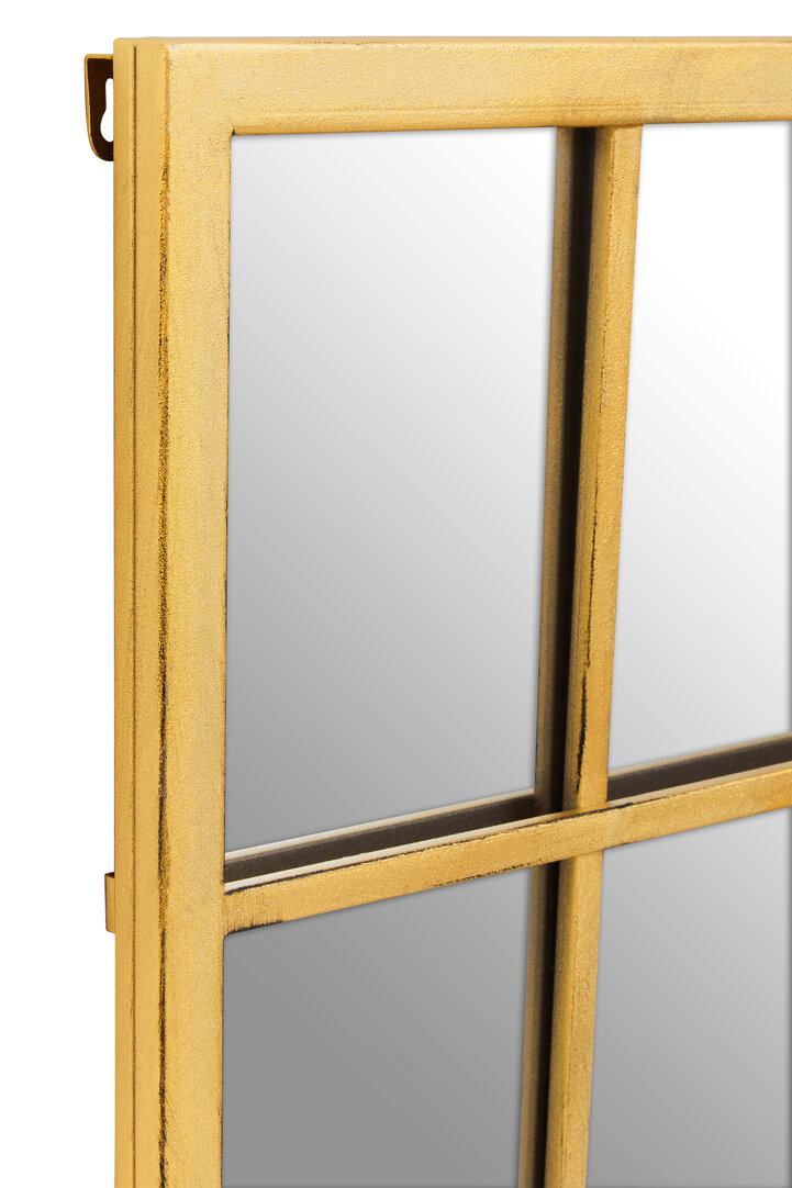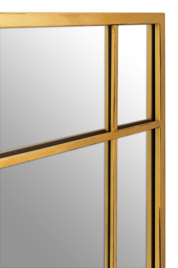 The Frey Panelled Wall Mirror features a nine-panel window design in brushed gold. A rectangular mirror that adds depth, light, and modern industrial style.
