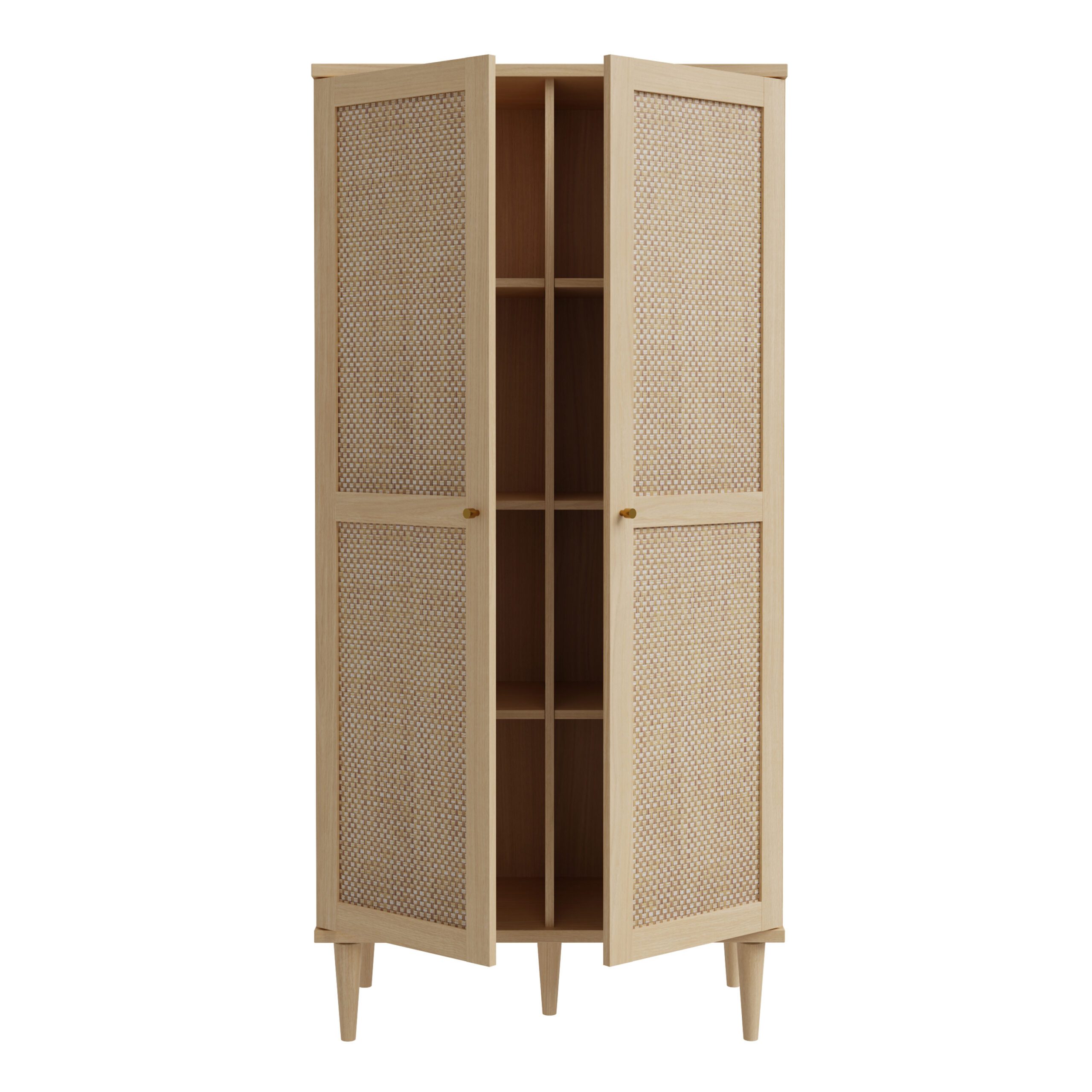 Our Grace Oak and Rattan Display Cabinet, provides two soft-close doors for easy access to the spacious interior, with ample storage for a variety of items.