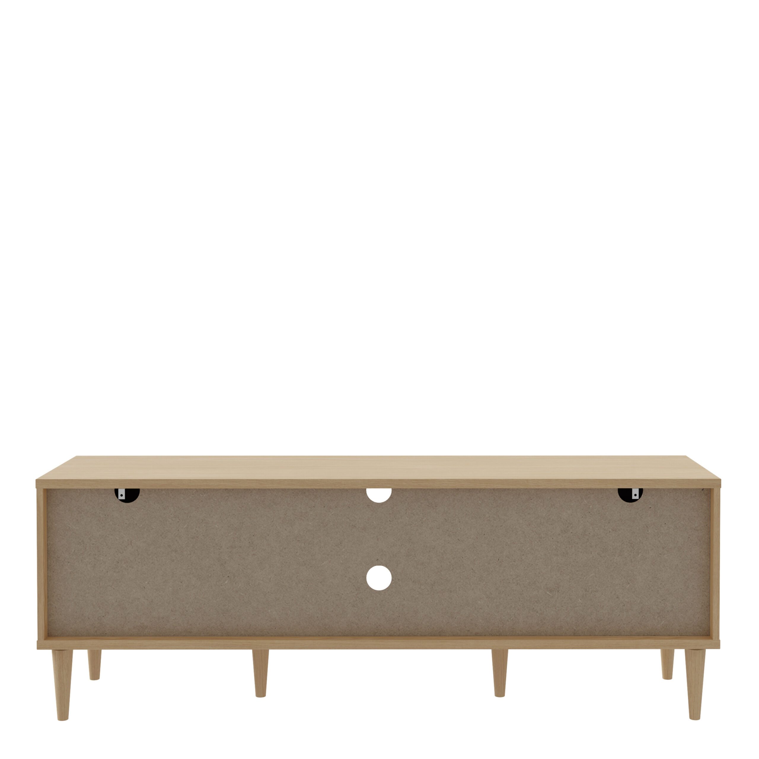 Constructed from quality light oak effect, this media unit boasts two soft-close doors, providing convenient storage for your media essentials.