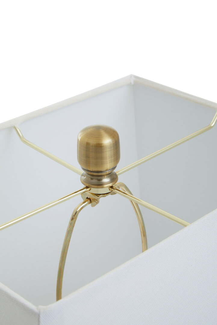 The marble body rests on a brushed gold rectangular base, which contrasts beautifully with the cool tones of the stone. The metallic finish enhances the lamp’s luxurious appeal, adding warmth and glamour to any interior setting. Together, the gold and marble create a sophisticated harmony that fits seamlessly in living rooms, bedrooms, or elegant offices.