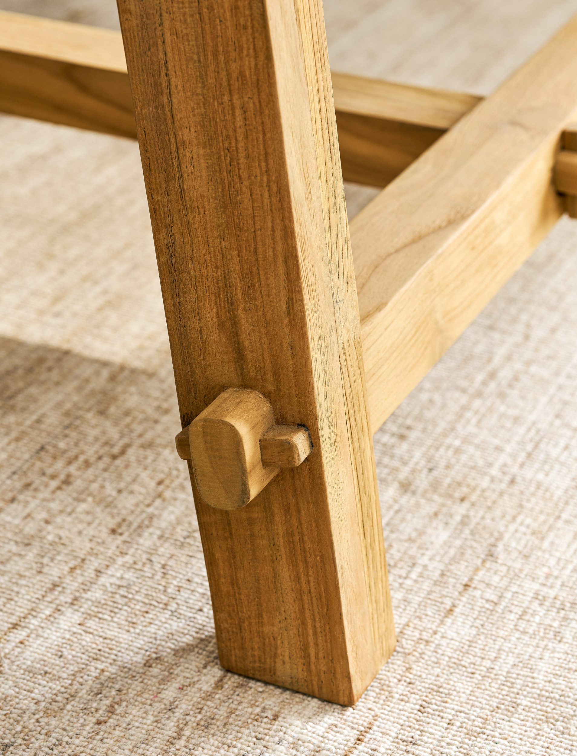 A striking live edge runs along the tabletop, highlighting the wood’s natural shape and enhancing its texture. The warm teak finish adds depth and personality, making the table an inviting centrepiece for family meals and relaxed gatherings. Comfortably seating six people, this table offers generous space for everyday dining and sociable entertaining.