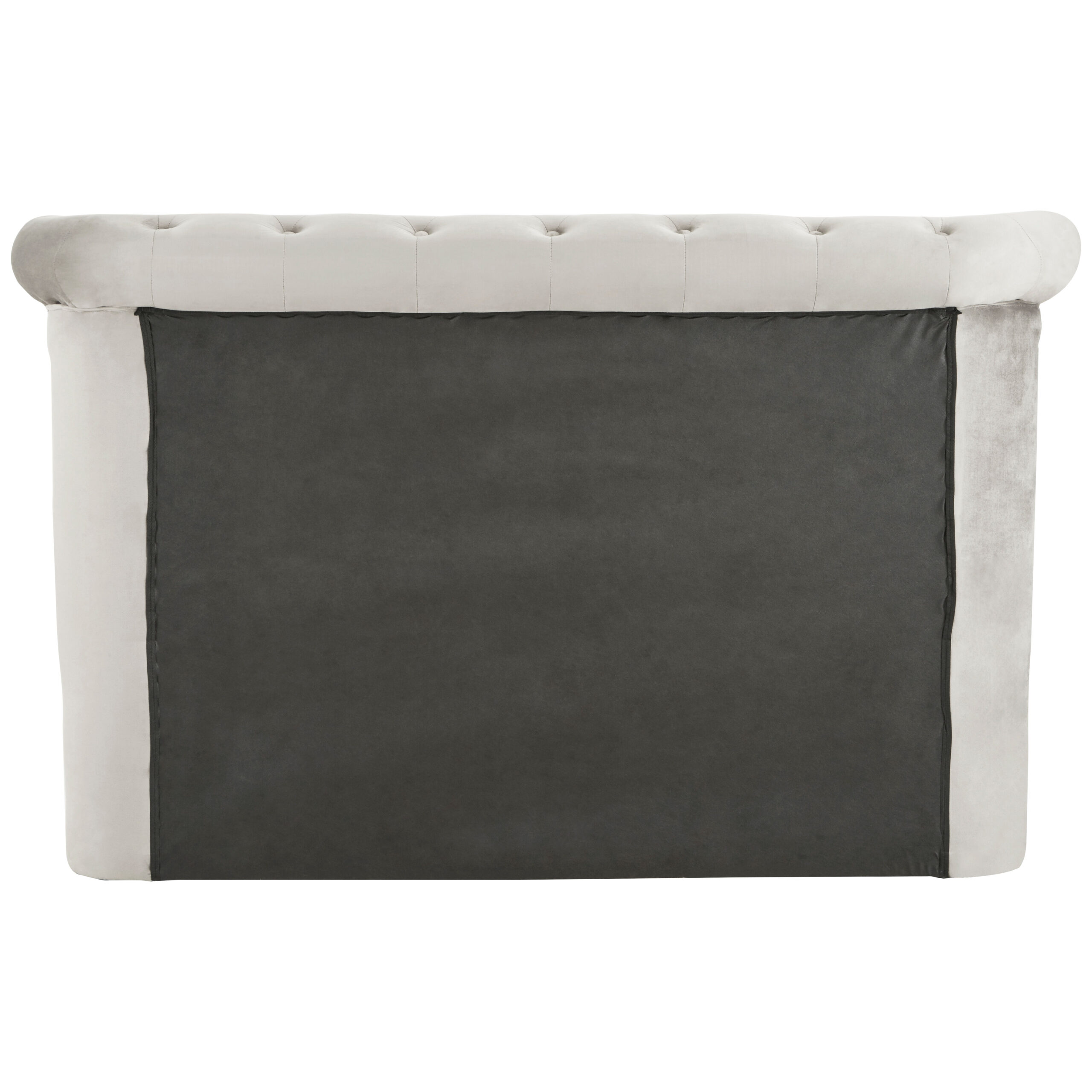 The linen fabric upholstery in light grey adds a layer of sophistication to the bed. The light grey tone is versatile, easily complimenting a variety of bedroom decor styles, from modern to classic.