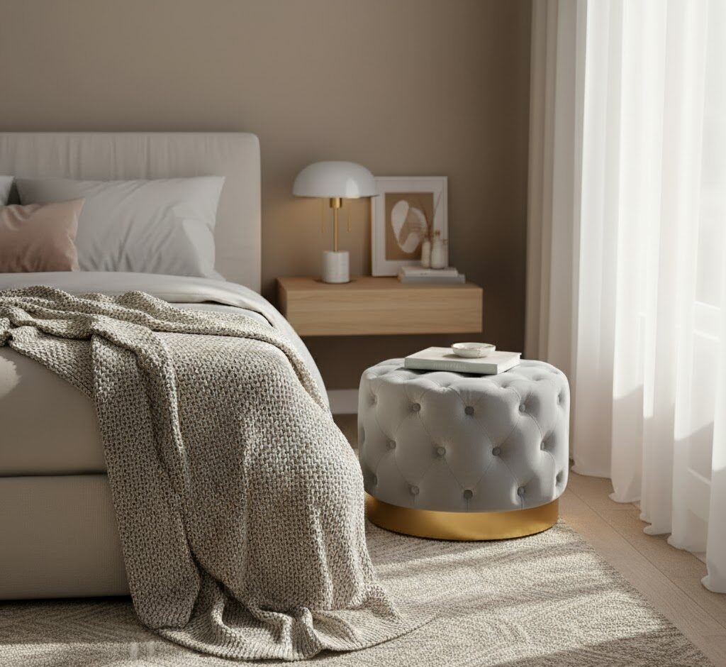 Moreover, the metal base is designed for durability. It provides solid support while maintaining a lightweight feel. This makes the stool easy to move around and perfect for various uses. Whether you use it as extra seating, a footrest, or a decorative accent, it fits seamlessly into your living room, bedroom, or dressing area.