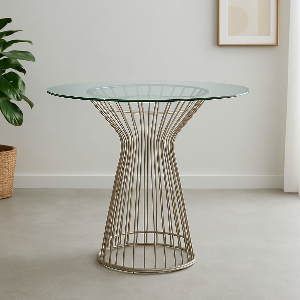 The round clear glass top offers a sleek, airy feel that enhances a sense of light and space. Crafted with precision, it allows the intricate base design to remain visible, highlighting the beauty of the table’s structure. The smooth glass surface is easy to clean and provides a perfect setting for elegant tableware, casual gatherings, or special occasions.