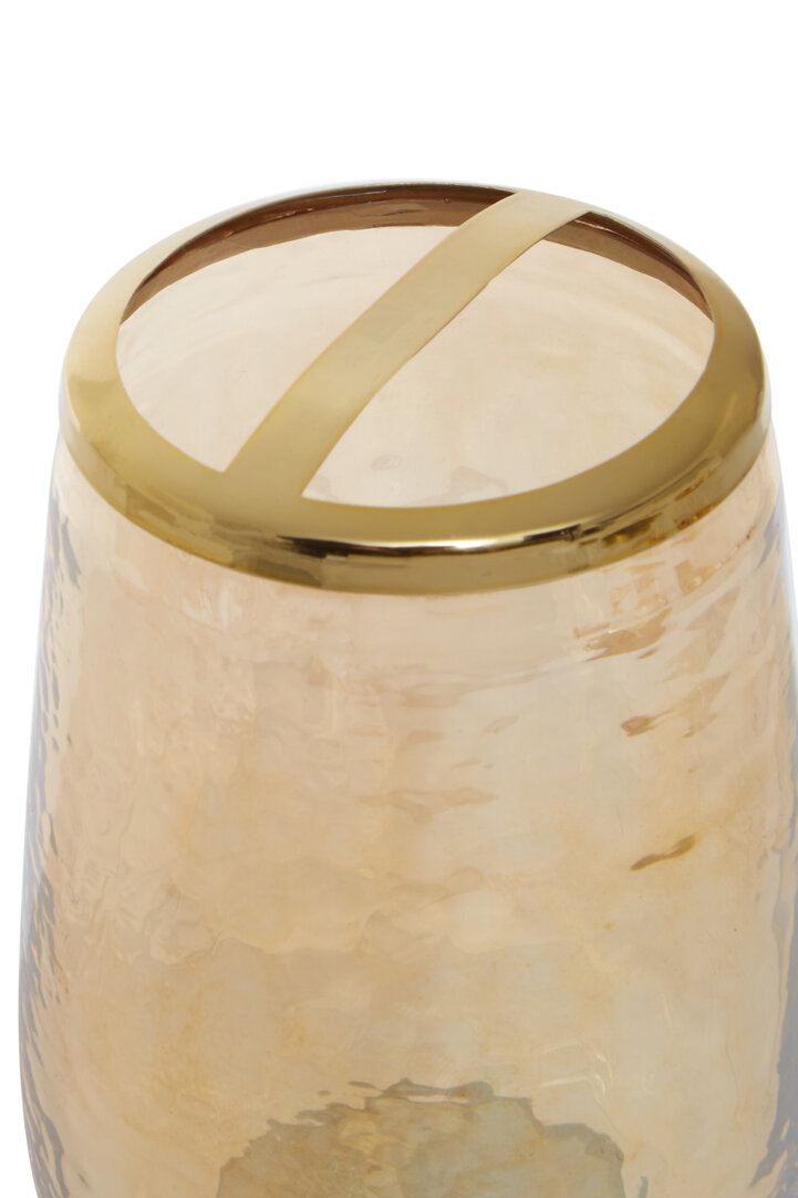 The Lume Glass Toothbrush Holder features a textured base, gold rim, and divider for stylish, organised storage in modern bathrooms.