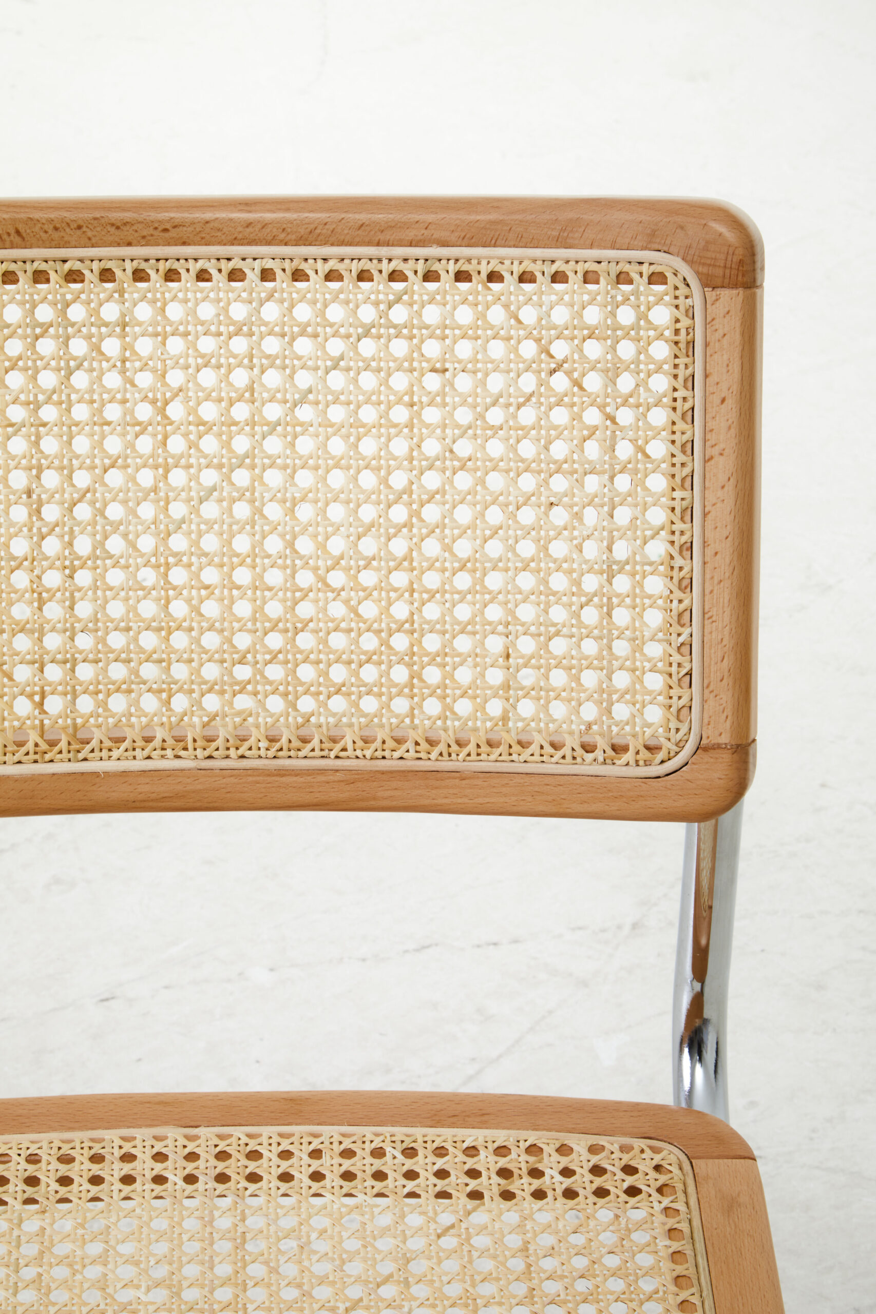 Adding to its allure is the woven rattan pattern that adorns the backrest, infusing the chair with a sense of organic charm. This intricate detail serves as a nod to nature, bringing a touch of the outdoors into your dining space.