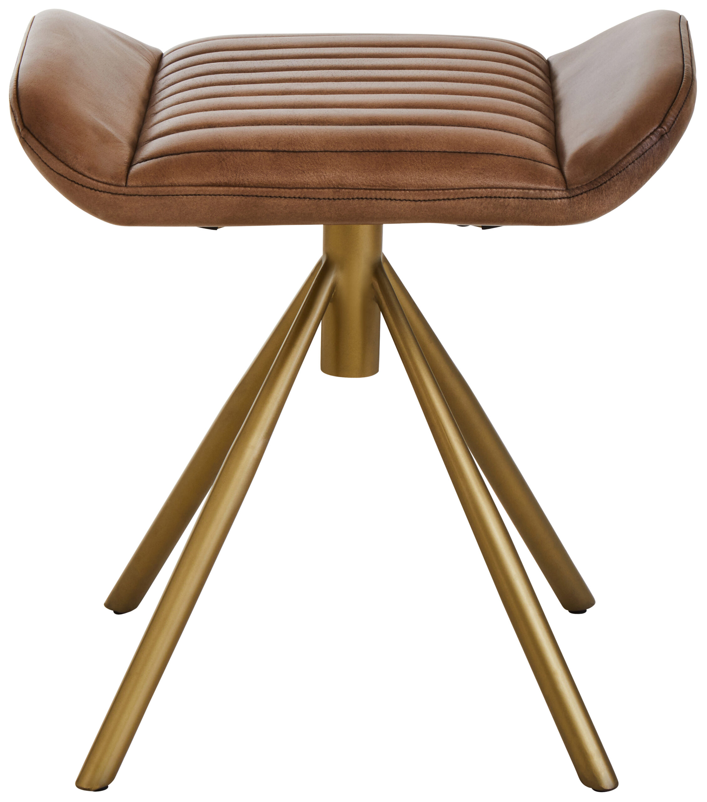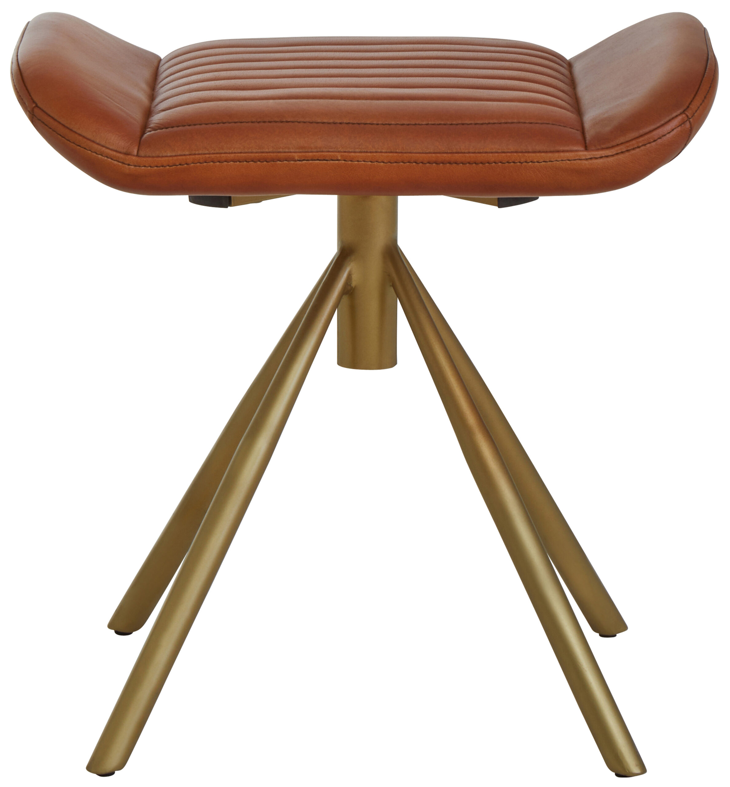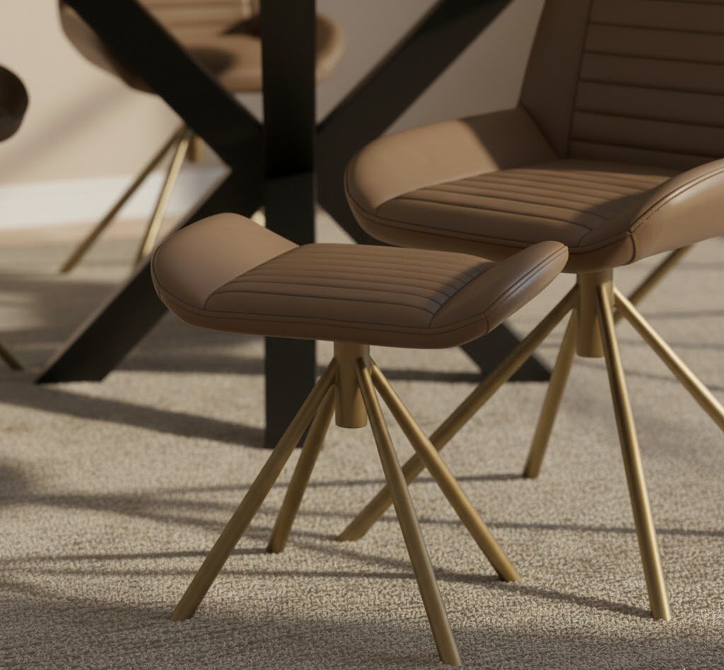 Its sleek design fits effortlessly into modern, classic, or industrial interiors. The clean lines and square shape create a structured look, while the leather finish adds texture and warmth. Slanted legs crafted from iron and finished in a lustrous gold tone add a touch of glamour and sophistication, enhancing the stool’s refined appeal. Whether in the living room, bedroom, or study, the Marco brings timeless charm to any corner.