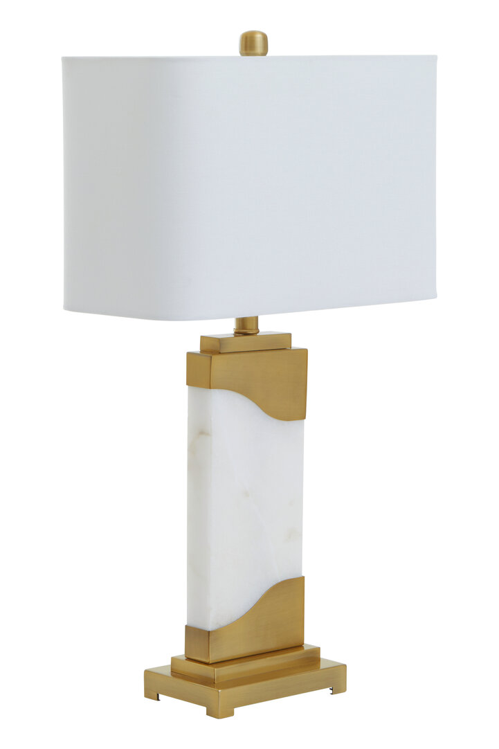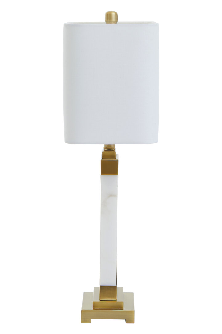 White marble pedestal with gold finish and ivory shade. Our Meadow Table Lamp is a contemporary, boutique-style table lamp for living rooms & bedrooms.