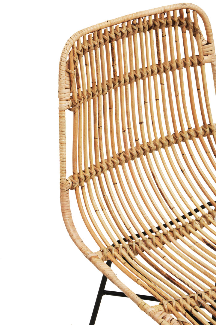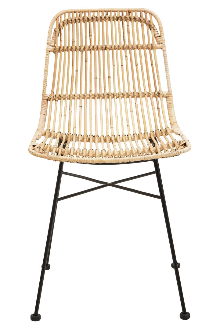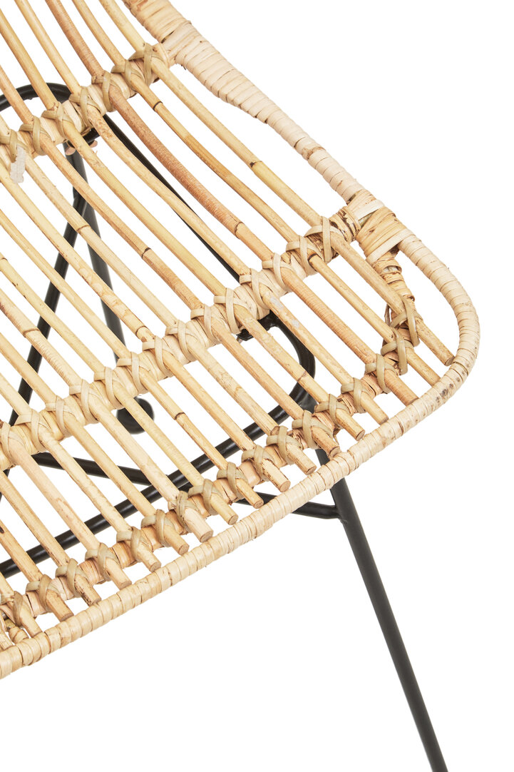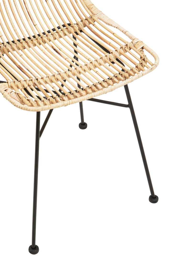 The slender black iron legs contrast beautifully against the natural tone of the rattan. Their minimalist form adds a contemporary edge while ensuring balance and stability. Because of this modern-meets-natural blend, the Milan Natural Rattan Chair compliments both rustic and modern interiors with ease.
