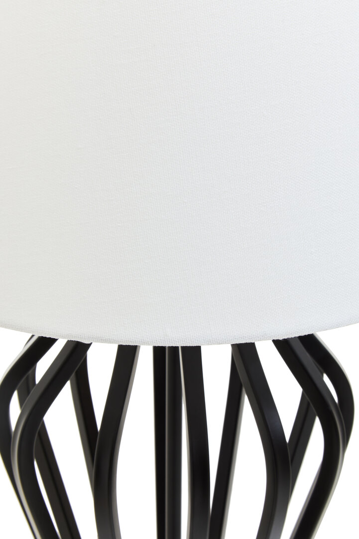 The combination of black iron, white marble, and a white fabric shade creates a modern, luxe aesthetic. Its elegant proportions, durable construction, and timeless design make it a standout piece that elevates the overall ambience of any room.