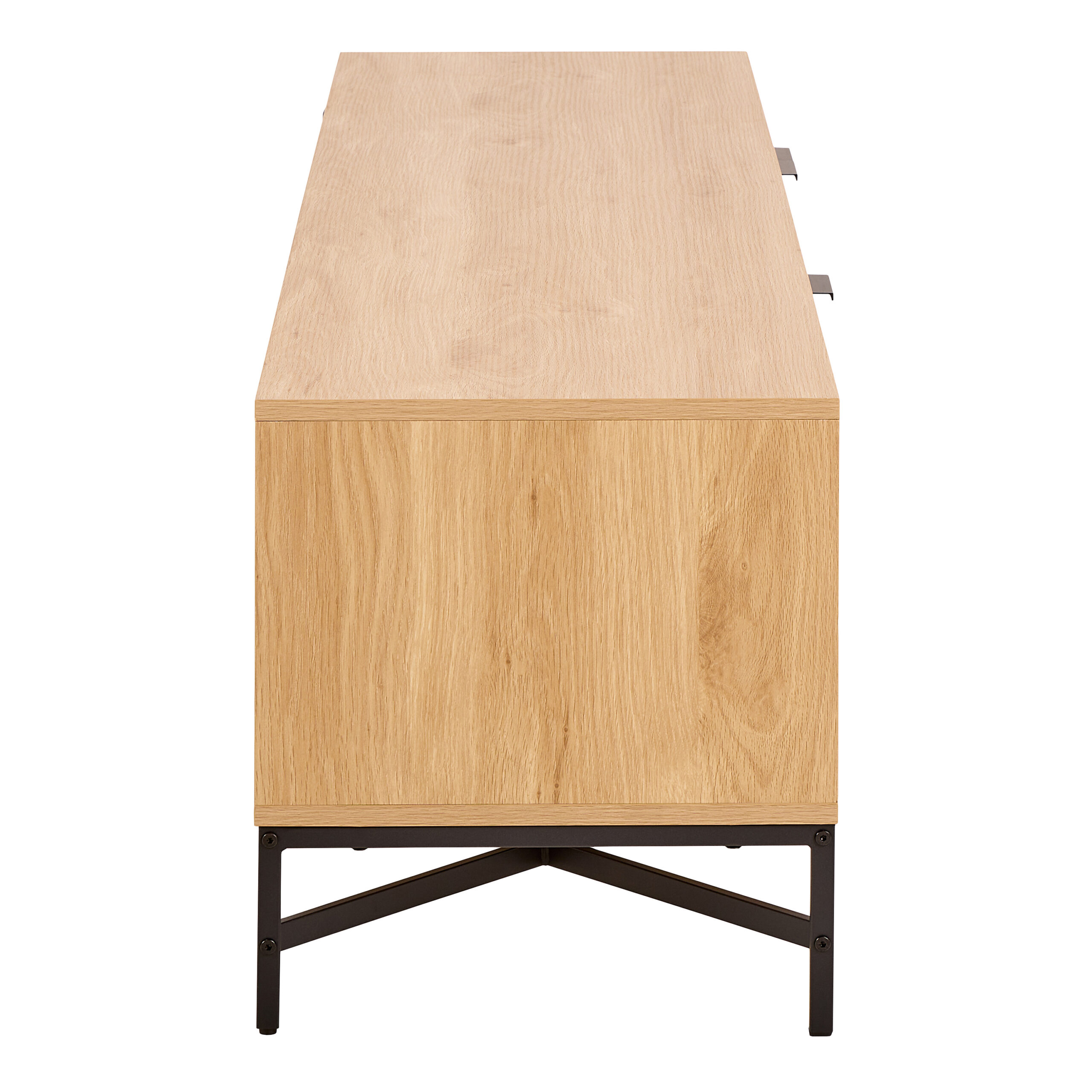 The black steel legs add contrast to the light oak effect body, giving the unit a balanced and sophisticated appearance. Their slim yet sturdy form elevates the unit, adding visual lightness while ensuring stability. This modern combination of materials enhances the Scandinavian character of the piece and makes it easy to pair with a variety of colour palettes and furniture styles.