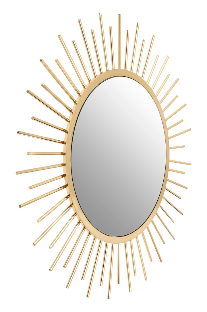 Illuminate your home with the Raku Gold Sunburst Wall Mirror. Features an irregular metal rod frame in radiant gold for a bold, luxurious statement.