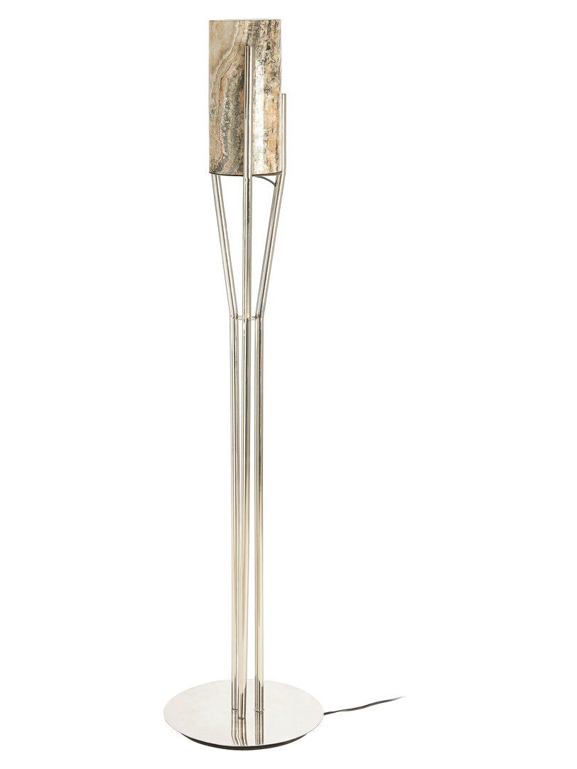 The Relic Floor Lamp balances durability with aesthetic appeal. The stainless steel frame supports the onyx stone securely while maintaining a slender profile that fits well in various room layouts. The natural veining and textured surface of the onyx make each lamp unique, giving your space a touch of artisanal craftsmanship.