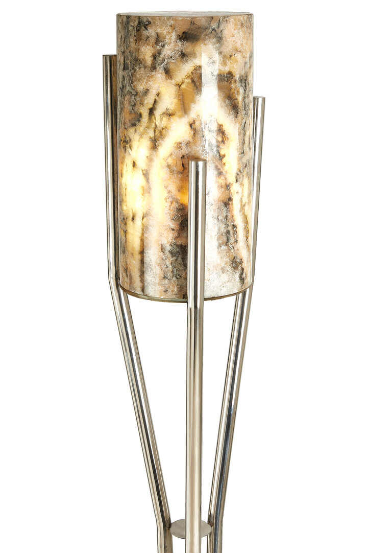 Our Relic Onyx Stone Floor Lamp, experience luxury lighting crafted from natural onyx & stainless steel. Perfect statement lamp for elegant modern interiors