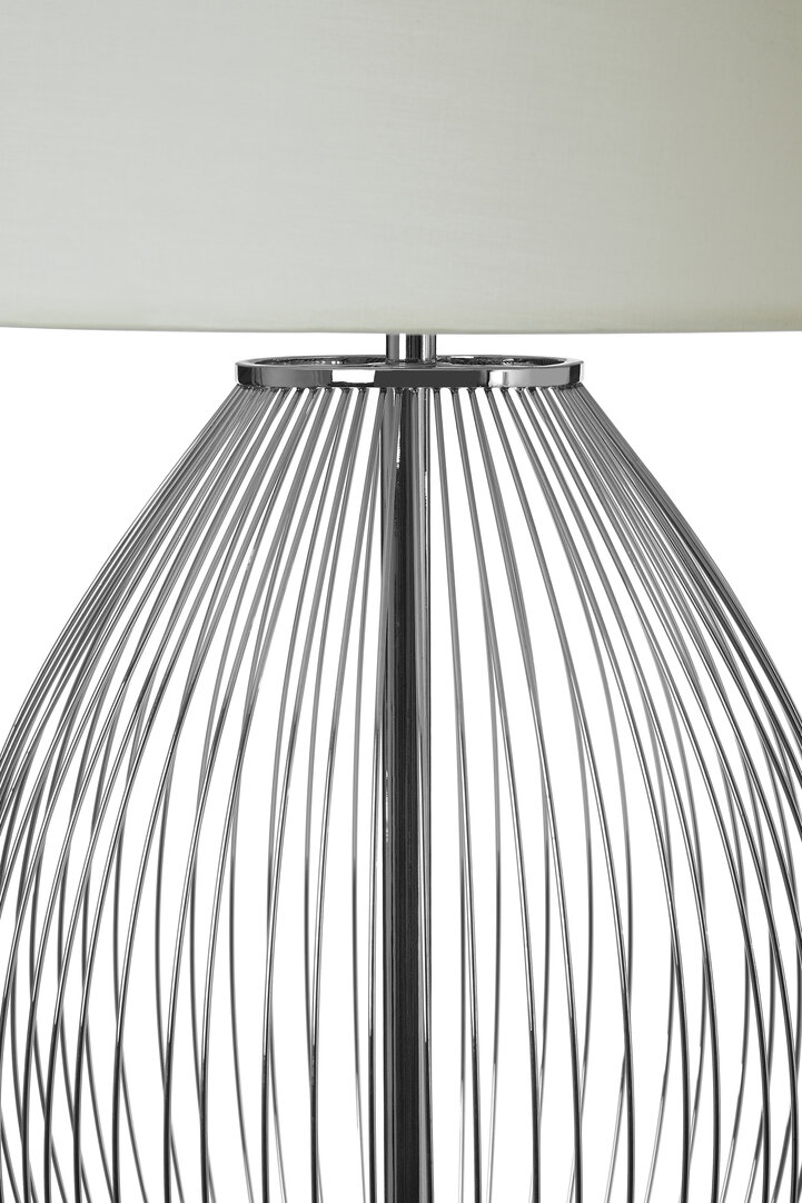 The Rendell Wireframe Table Lamp features a chrome iron base, curved wireframe body & linen shade that create a refined, ambient & contemporary aesthetic.