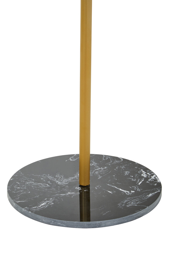 The stand is balanced on a sturdy black marble-effect base, which anchors the slim frame while adding a refined contrast. This marble-inspired finish introduces texture and depth, creating a luxurious foundation that elevates the overall look. Together, the gold and black tones create a timeless pairing that works effortlessly in modern or transitional interiors.