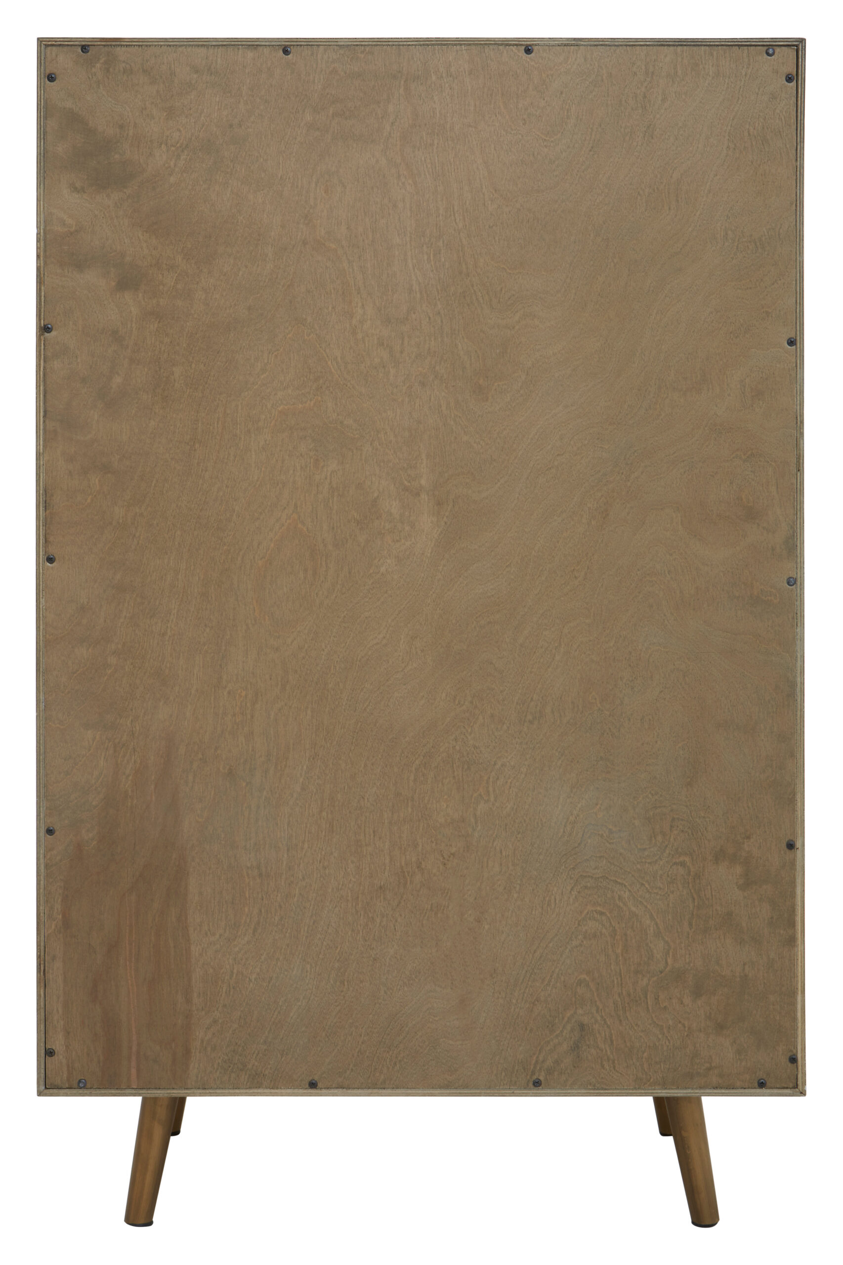 Each of the five spacious drawers features a subtle geometric pattern that gives this chest a contemporary yet timeless appeal. The clean lines and minimalist profile allow it to blend seamlessly with both modern and traditional interiors. Whether placed in the bedroom, hallway, or living room, this piece adds understated elegance and practical storage.