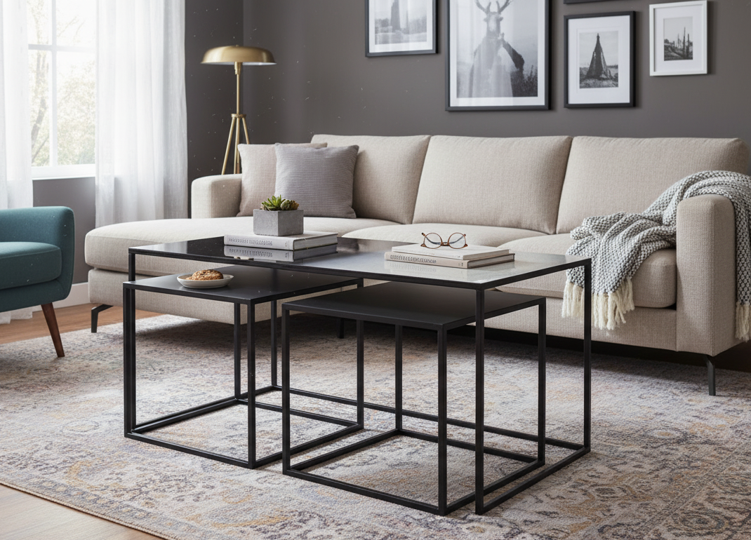 The set includes two smaller tables that slide neatly under the main coffee table. This versatile design allows you to expand surface space when needed or tuck them away for a clean, uncluttered look. Use the smaller tables separately as side tables or together for a layered display.
