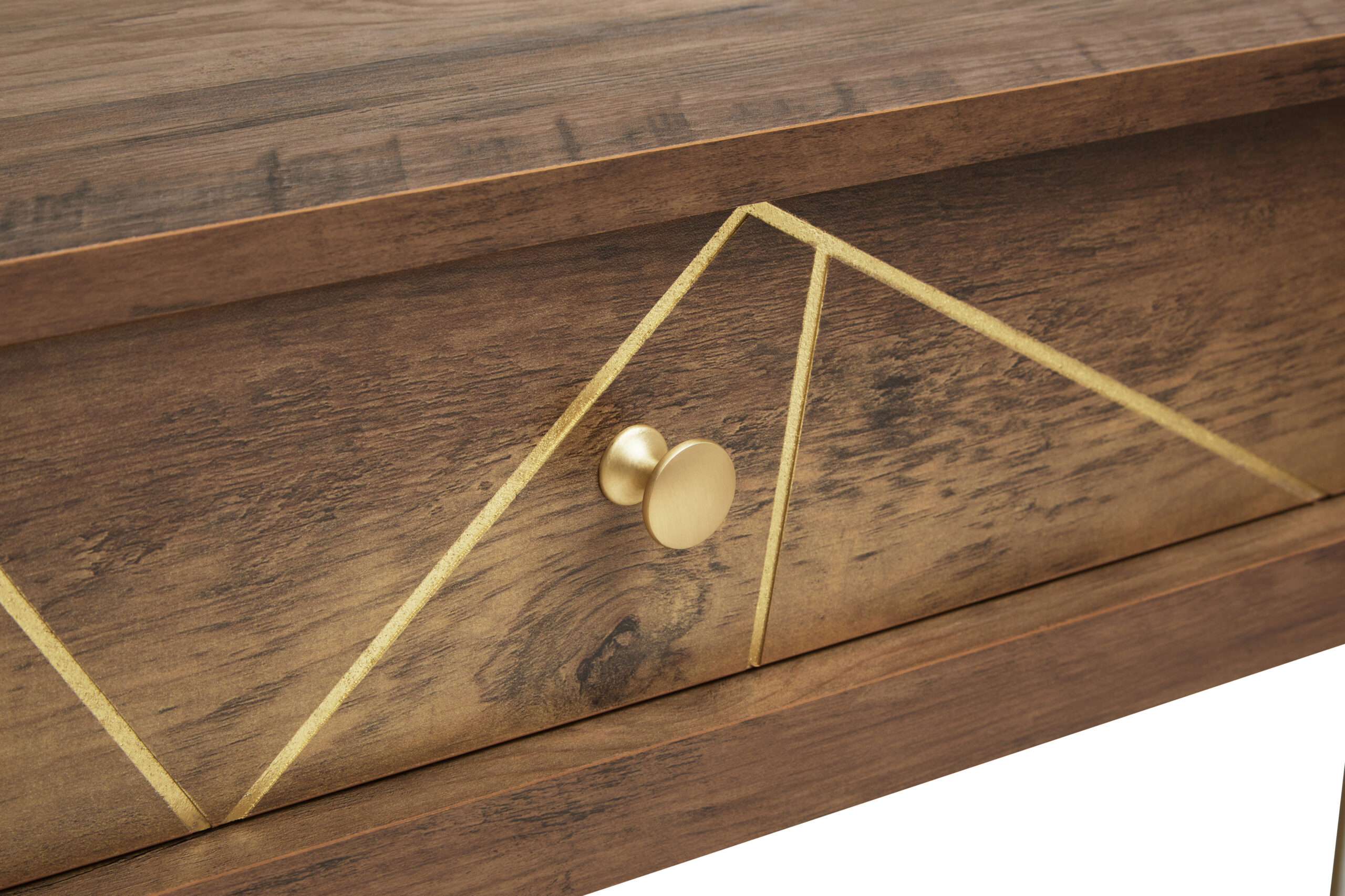 Crafted with a wood veneering effect, the table surface showcases natural warmth and texture. The veneer brings a rustic charm while remaining sleek and contemporary. The console features two spacious drawers that offer ample storage for everyday essentials, such as keys, notepads, or tech accessories. These drawers are designed for smooth operation, blending seamlessly with the overall profile of the table.