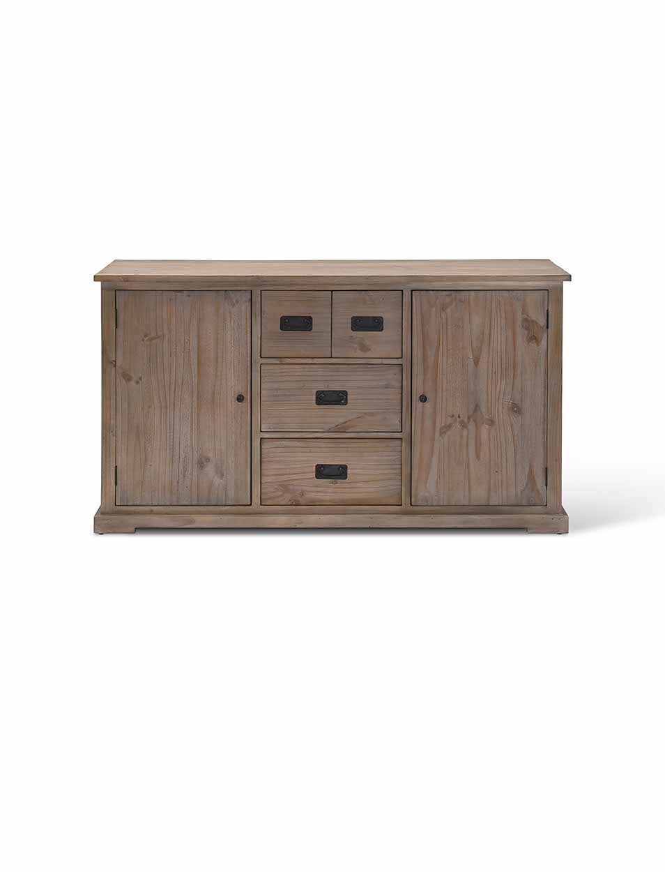 This spacious unit includes two large cupboards, two small drawers and two bigger drawers. You can store crockery, glassware, tableware, games or everyday essentials with ease. The sturdy design suits busy homes and adds a natural, textured look to any room.