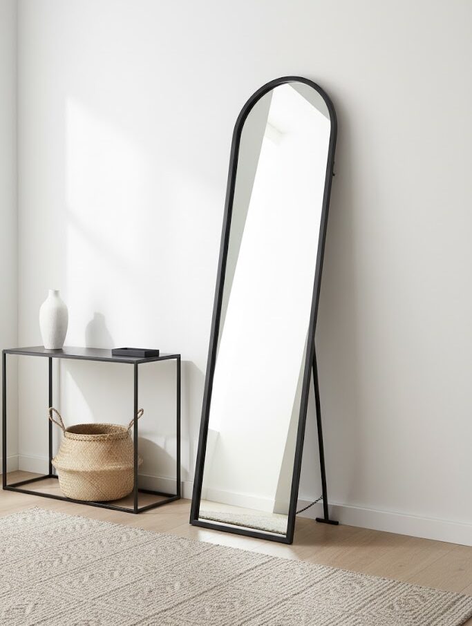 Moreover, the mirror’s freestanding design allows for flexible placement. Lean it against a wall for a casual, stylish feel or mount it securely for a polished finish. It fits seamlessly into minimalist, industrial, or Scandinavian-inspired interiors.