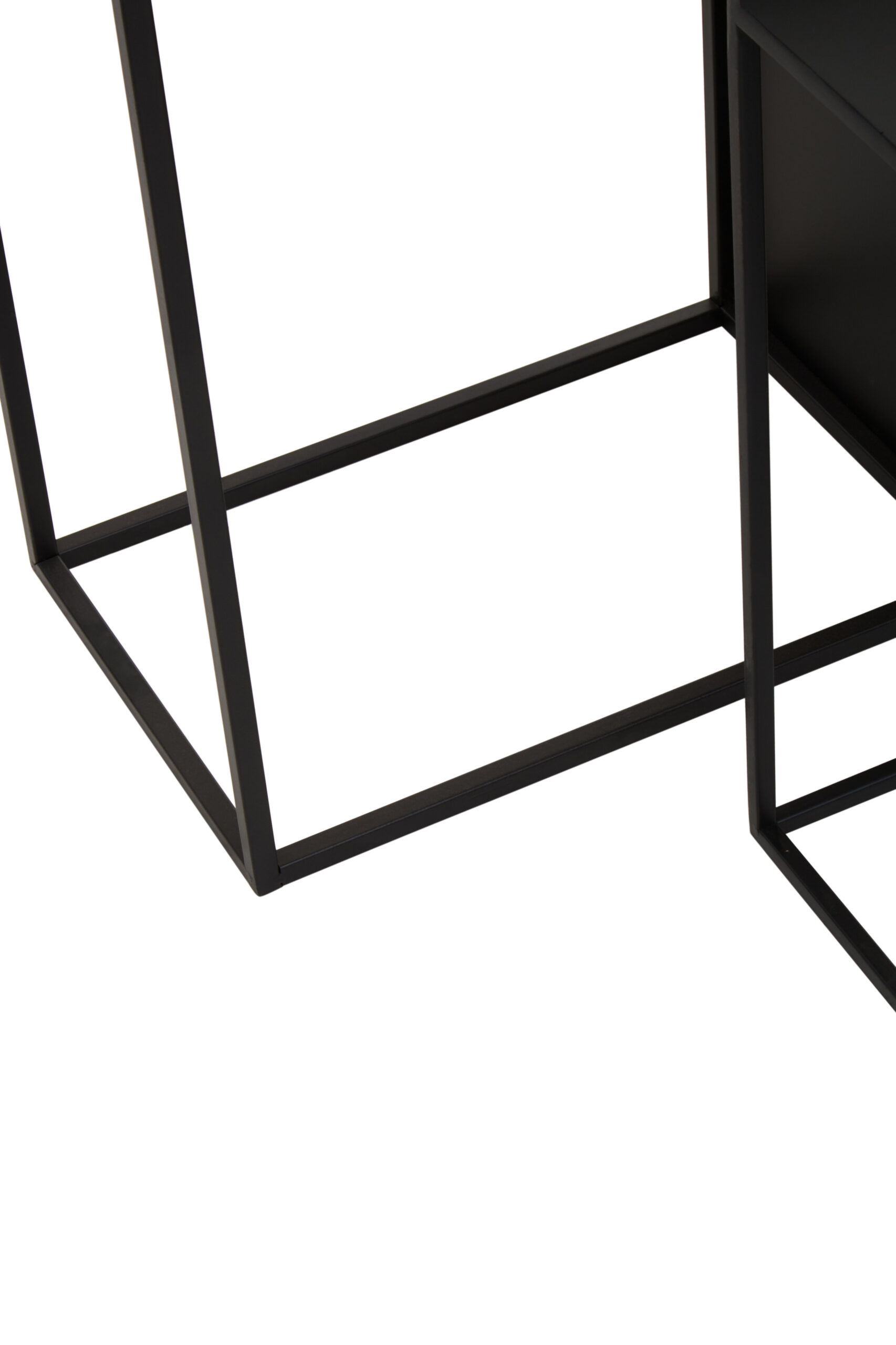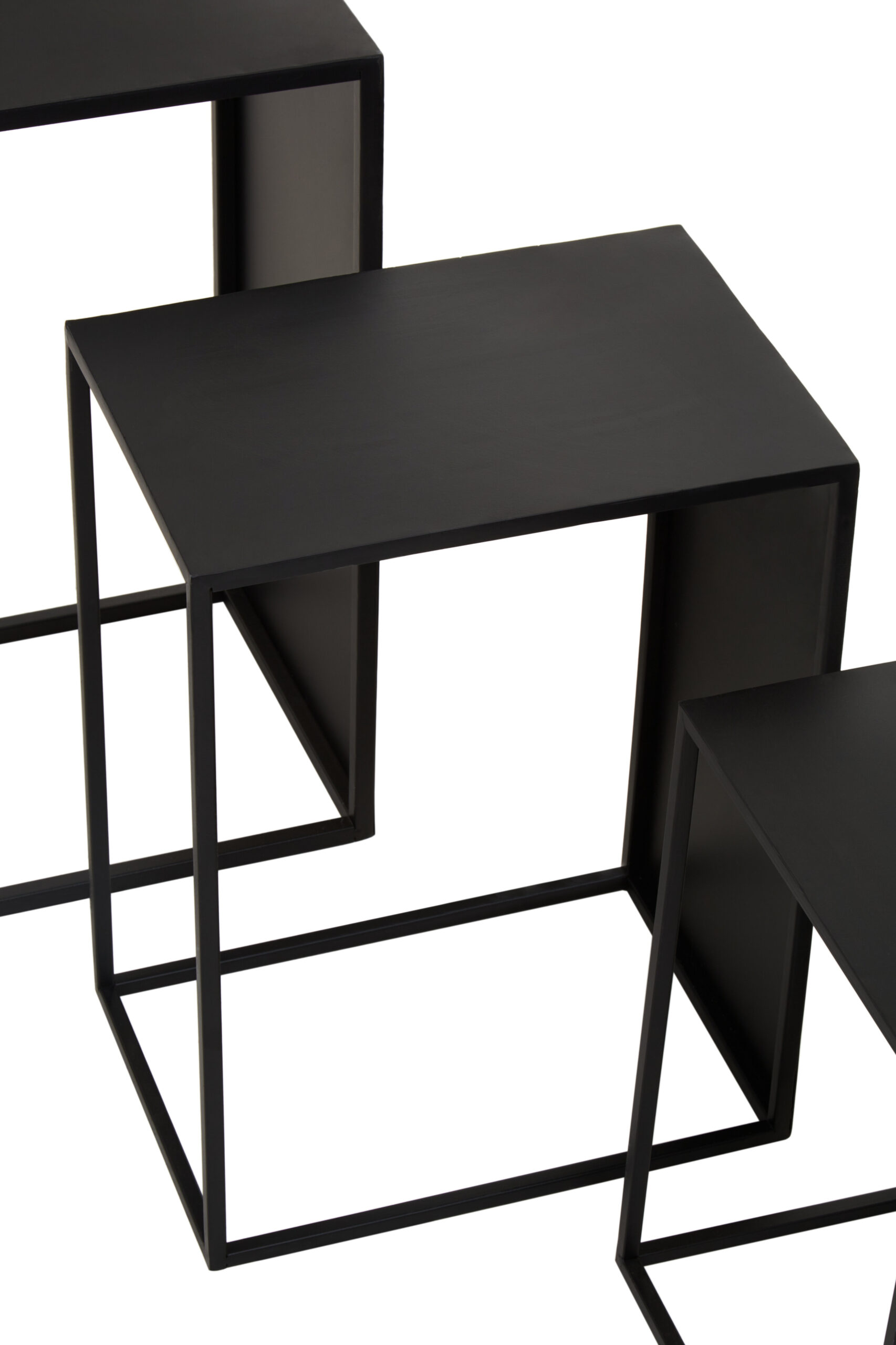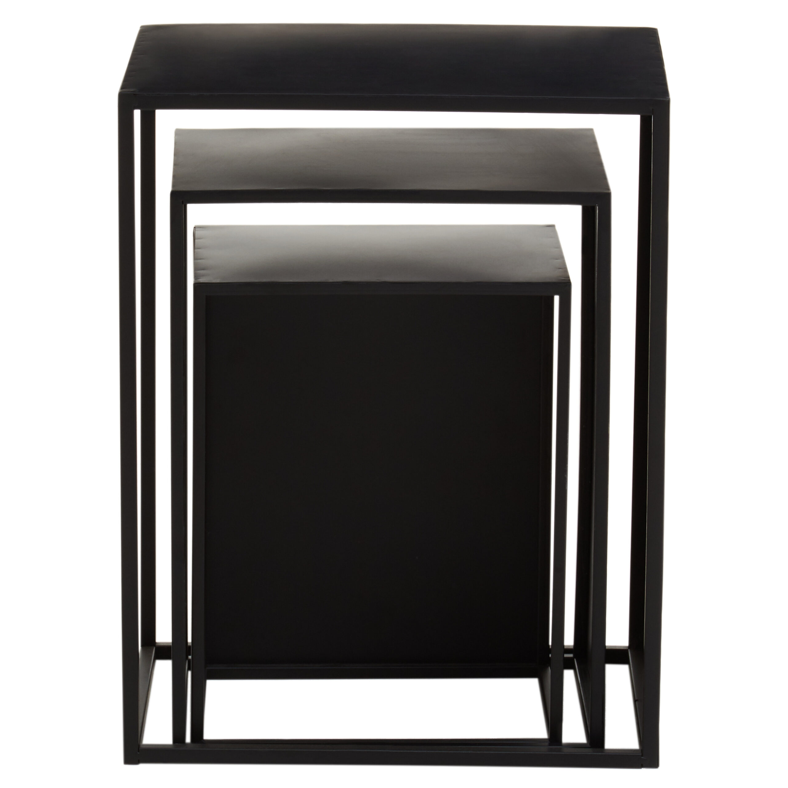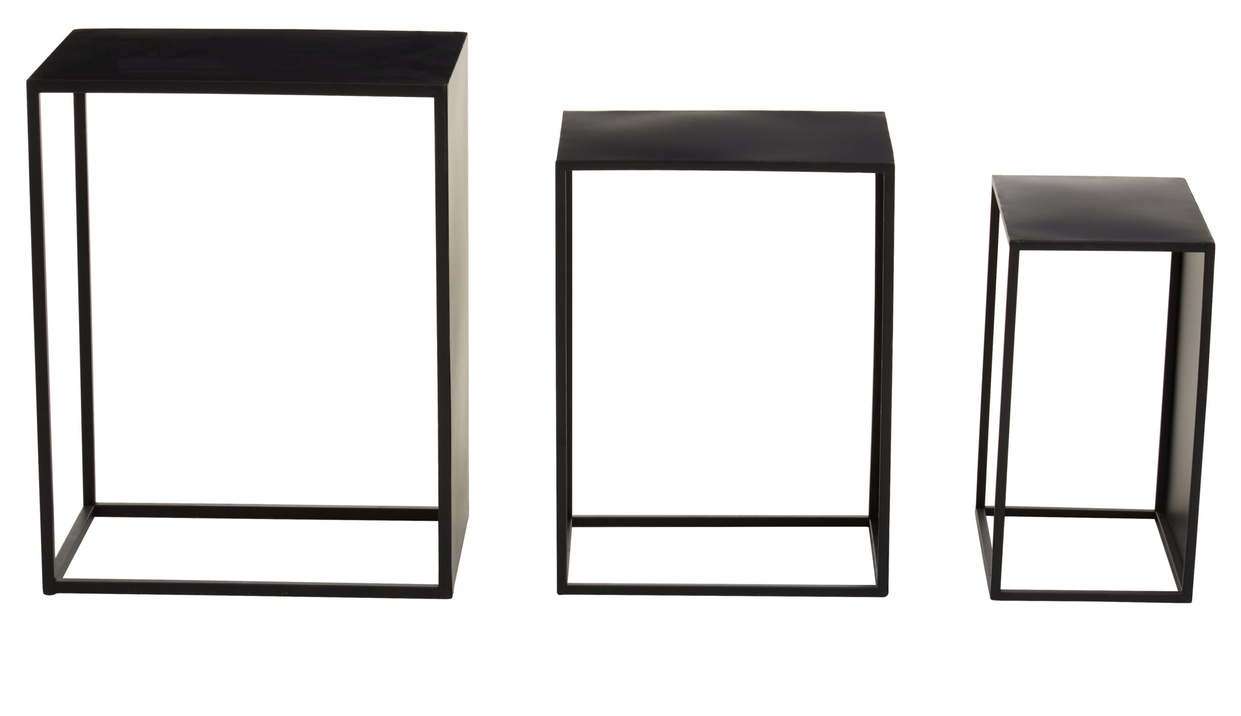 In summary, the Valento Set of 3 Side Tables feature rectangular black iron tops, slim legs, and hollow rectangular bases for stability. Their minimalist design adds a luxe, modern touch to any room. Durable and stylish, these tables are perfect for adding function and elegance to your living space.