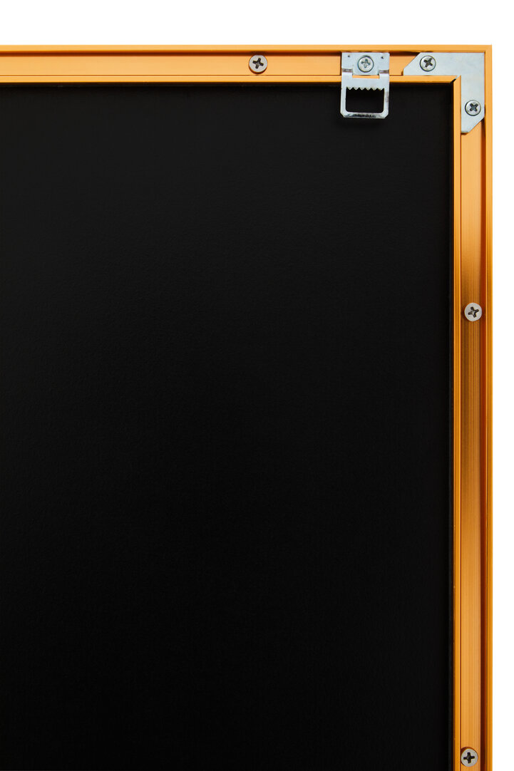 A slim gold frame borders the canvas, offering a polished finish that enhances its aesthetic appeal. This minimalist frame compliments the artwork’s modern structure while adding an element of luxury. The gold edging also catches the light, subtly shifting tones as daylight changes throughout the room.